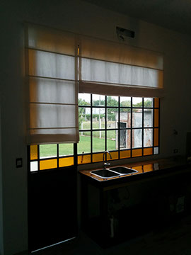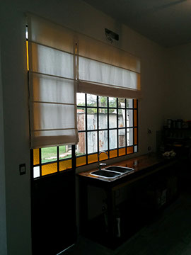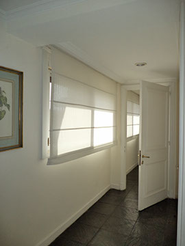 Consisten en un panel plano que se pliega de manera horizontal a la ventana, permitiendo ser recogido hasta la altura deseada.